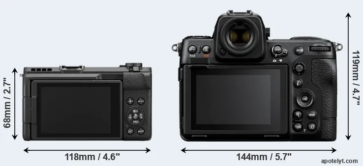 If the front view area (width x height) of the cameras is taken as an aggregate measure of their size, the Nikon Z8 is considerably larger (114 percent) than the Canon V1. It is noteworthy in this context that the Z8 is splash and dust-proof, while the V1 does not feature any corresponding weather-sealing.