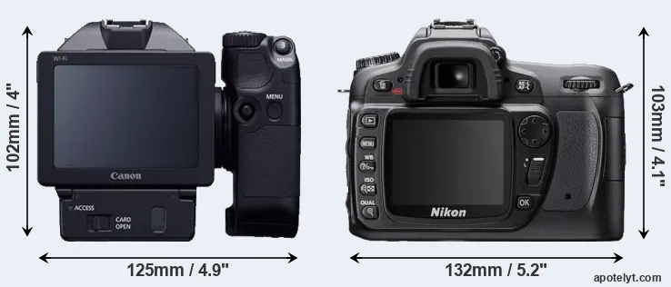 If the front view area (width x height) of the cameras is taken as an aggregate measure of their size, the Nikon D80 is notably larger (7 percent) than the Canon XC10. In this context, it is worth noting that neither the XC10 nor the D80 are weather-sealed.
