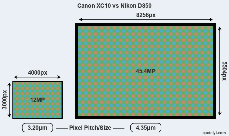 | Sensor Specs | Canon XC10 | Nikon D850 |