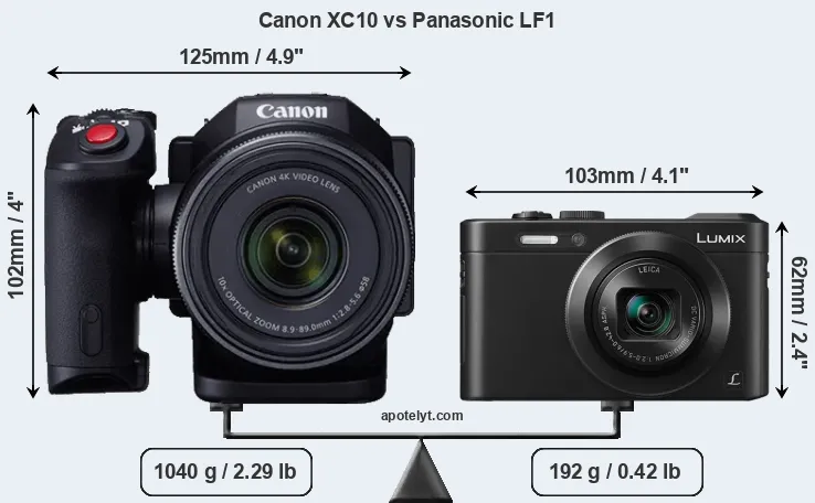 If the front view area (width x height) of the cameras is taken as an aggregate measure of their size, the Panasonic LF1 is considerably smaller (50 percent) than the Canon XC10. Moreover, the LF1 is substantially lighter (82 percent) than the XC10. In this context, it is worth noting that neither the XC10 nor the LF1 are weather-sealed.