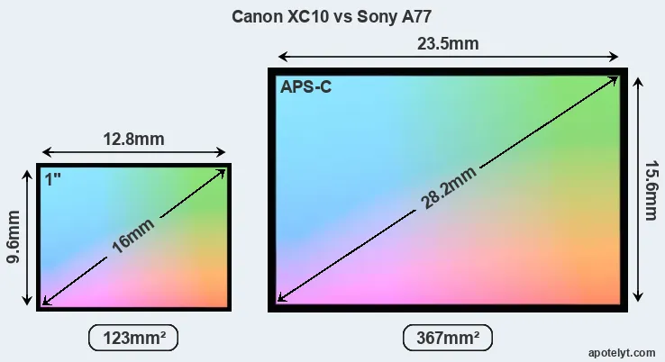 | Sensor Specs | Canon XC10 | Sony A77 |