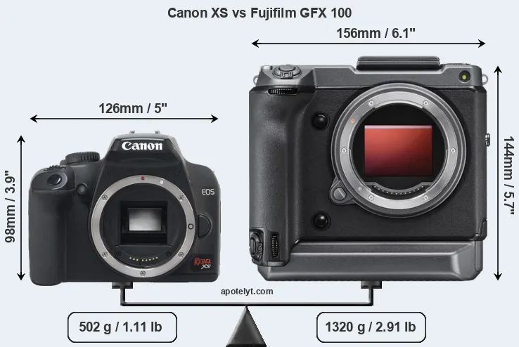 | Body Specs | Canon XS | Fujifilm GFX 100 |