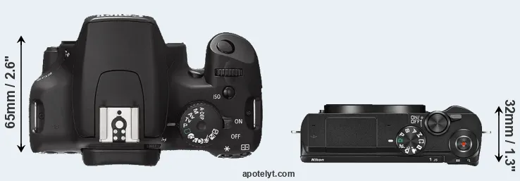 | 12. | Canon T100 | 129 mm | 102 mm | 77 mm | 436 g | 500 | n | Feb 2018 | EUR 399 | amazon.com | |