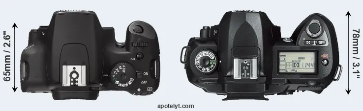 | 12. | Canon XTi | 127 mm | 84 mm | 65 mm | 556 g | 370 | n | Aug 2006 | EUR 799 | ebay.com | |