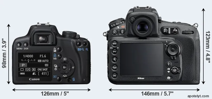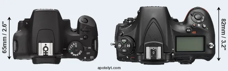 | 2. | Nikon D810 | 146 mm | 123 mm | 82 mm | 980 g | 1200 | Y | Jun 2014 | US$ 3 299 | ebay.com | |