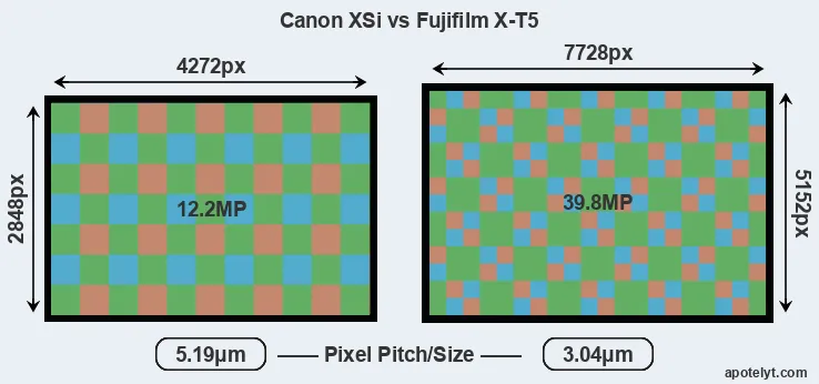 | Sensor Specs | Canon XSi | Fujifilm X-T5 |