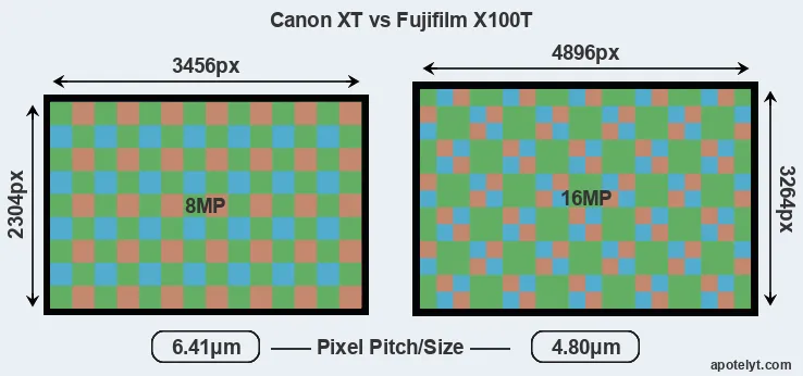 | Sensor Specs | Canon XT | Fujifilm X100T |
