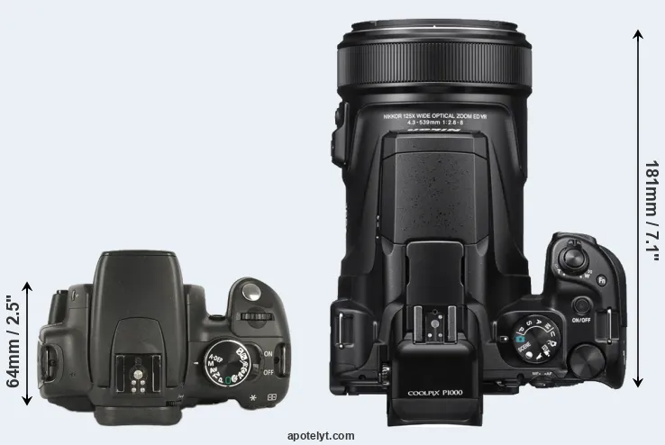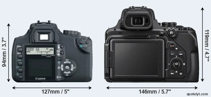 | Body Specs | Canon XT | Nikon P1000 |
