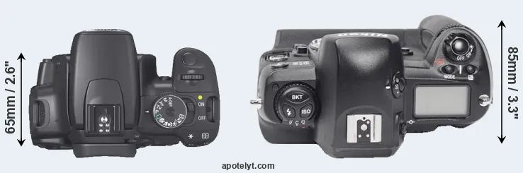 | 14. | Nikon D2X | 158 mm | 150 mm | 86 mm | 1252 g | 3800 | Y | Sep 2004 | US$ 4 999 | ebay.com | |