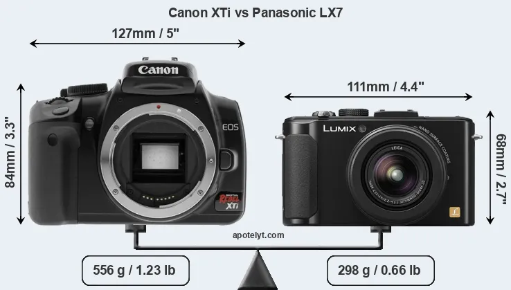 | Body Specs | Canon XTi | Panasonic LX7 |