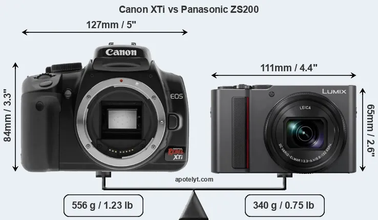 | Body Specs | Canon XTi | Panasonic ZS200 |