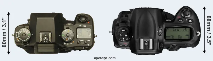 | 12. | Nikon D1X | 157 mm | 153 mm | 85 mm | 1100 g | 1200 | Y | Feb 2001 | US$ 5 999 | ebay.com | |