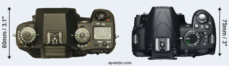 | 15. | Nikon D5000 | 127 mm | 104 mm | 80 mm | 590 g | 510 | n | Apr 2009 | US$ 749 | ebay.com | |