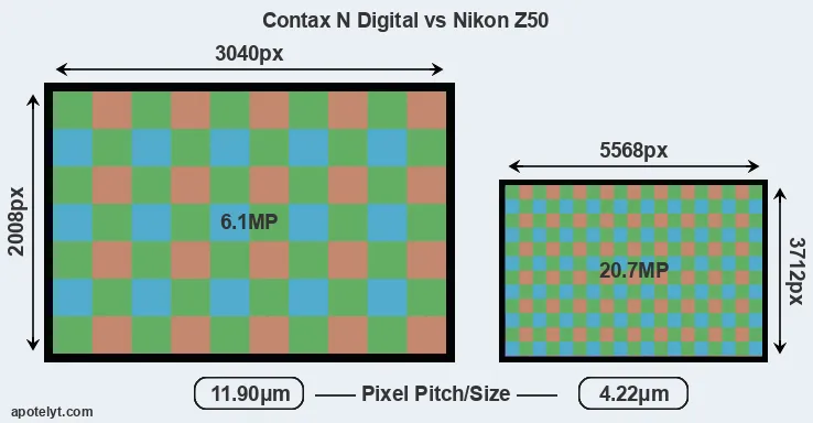 | Sensor Specs | Contax N Digital | Nikon Z50 |