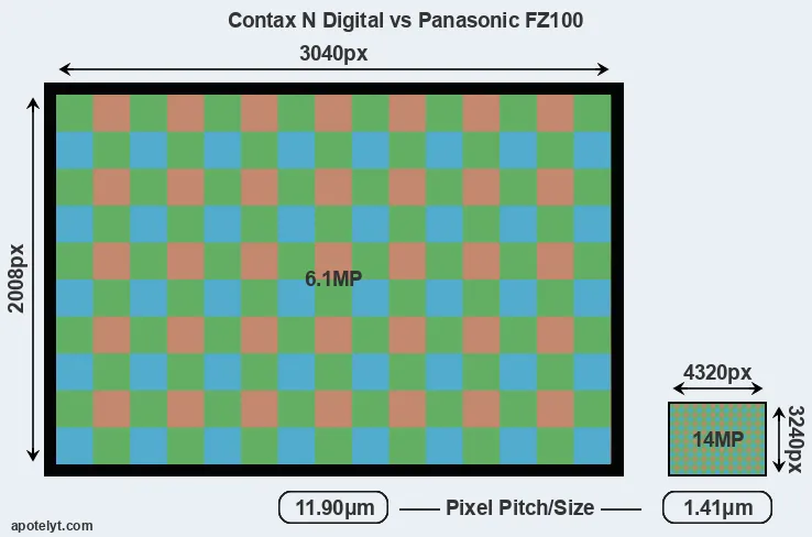 | Sensor Specs | Contax N Digital | Panasonic FZ100 |