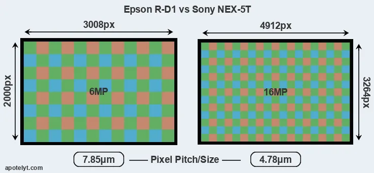 | Sensor Specs | Epson R-D1 | Sony NEX-5T |