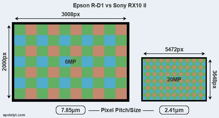 | Sensor Specs | Epson R-D1 | Sony RX10 II |