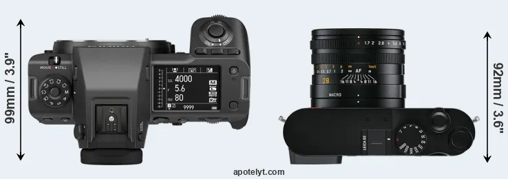The above size and weight comparisons are to some extent incomplete and possibly misleading, as the Q2 has a lens built in, whereas the GFX 100 II is an interchangeable lens camera that requires a separate lens. Attaching the latter will add extra weight and bulk to the setup.