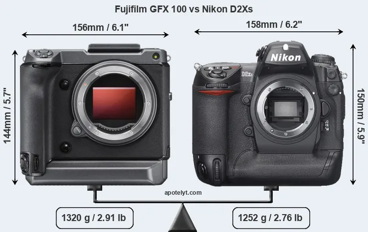 | Body Specs | Fujifilm GFX 100 | Nikon D2Xs |