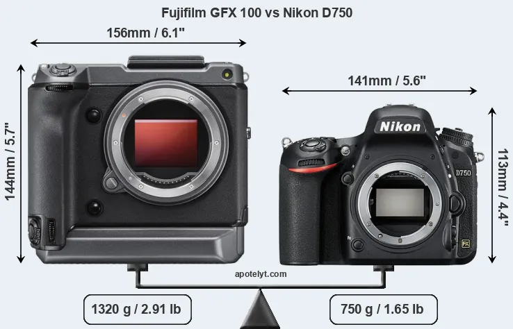 | Body Specs | Fujifilm GFX 100 | Nikon D750 |