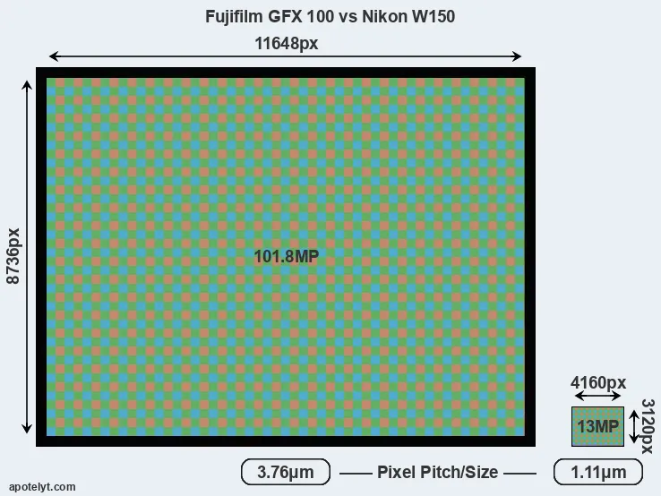 | Sensor Specs | Fujifilm GFX 100 | Nikon W150 |