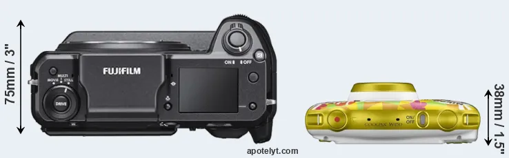 Going beyond this snapshot of core features and characteristics, what are the differences between the Fujifilm GFX 100 and the Nikon Coolpix W150? Which one should you buy? Read on to find out how these two cameras compare with respect to their body size, their imaging sensors, their shooting features, their input-output connections, and their reception by expert reviewers.