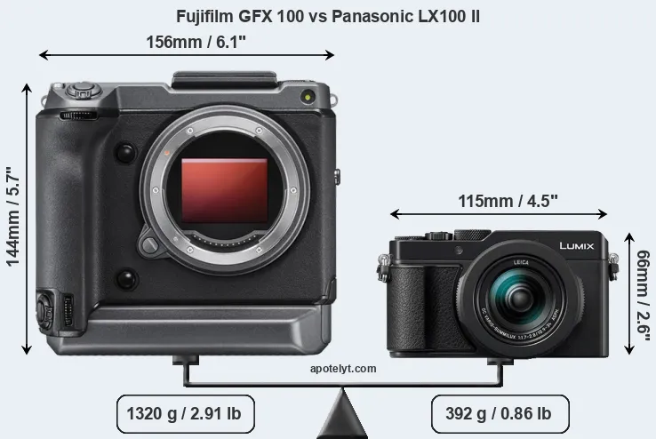 | Body Specs | Fujifilm GFX 100 | Panasonic LX100 II |