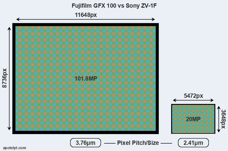 | Sensor Specs | Fujifilm GFX 100 | Sony ZV-1F |