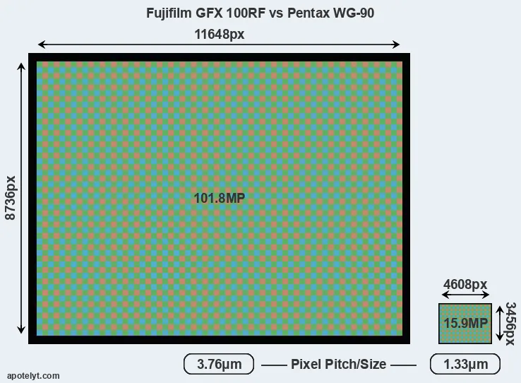 | Sensor Specs | Fujifilm GFX 100RF | Pentax WG-90 |