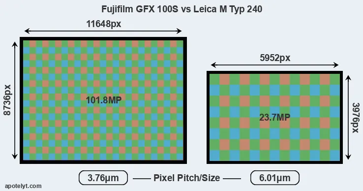 | Sensor Specs | Fujifilm GFX 100S | Leica M Typ 240 |