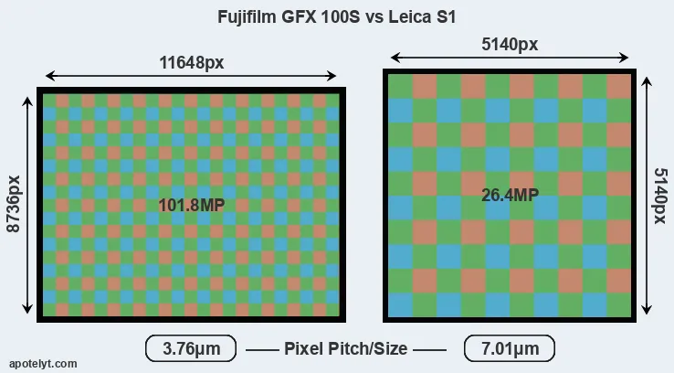 | Sensor Specs | Fujifilm GFX 100S | Leica S1 |