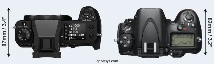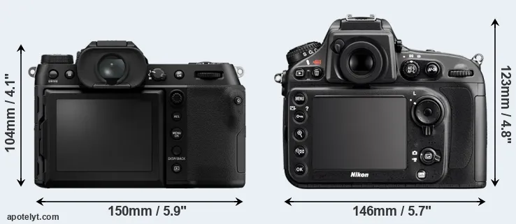 | Body Specs | Fujifilm GFX 100S | Nikon D800 |