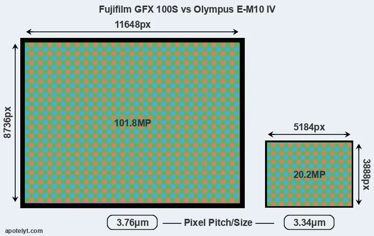 | Sensor Specs | Fujifilm GFX 100S | Olympus E-M10 IV |