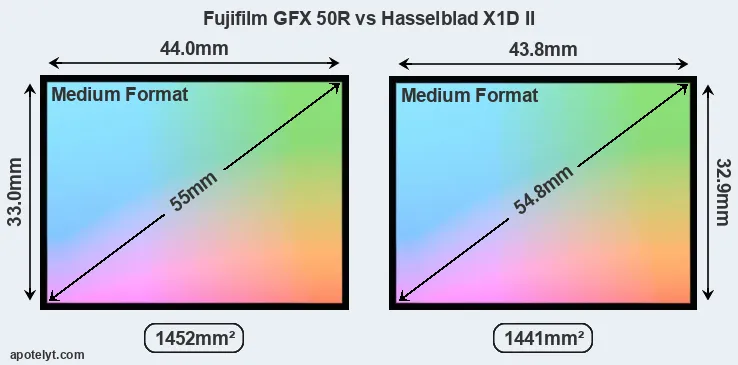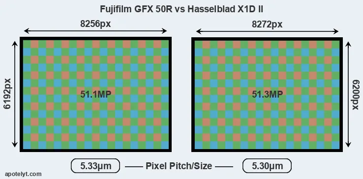 | Sensor Specs | Fujifilm GFX 50R | Hasselblad X1D II |