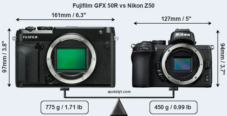 | Body Specs | Fujifilm GFX 50R | Nikon Z50 |