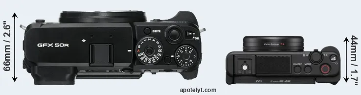 Specifications: Fujifilm GFX 50R vs Sony ZV-1