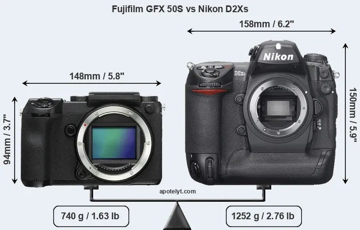 | Body Specs | Fujifilm GFX 50S | Nikon D2Xs |