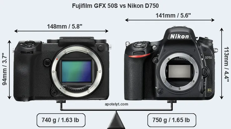 | Body Specs | Fujifilm GFX 50S | Nikon D750 |
