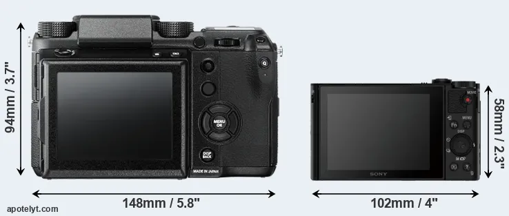 The above size and weight comparisons are to some extent incomplete and possibly misleading, as the HX90V has a lens built in, whereas the GFX 50S is an interchangeable lens camera that requires a separate lens. Attaching the latter will add extra weight and bulk to the setup.