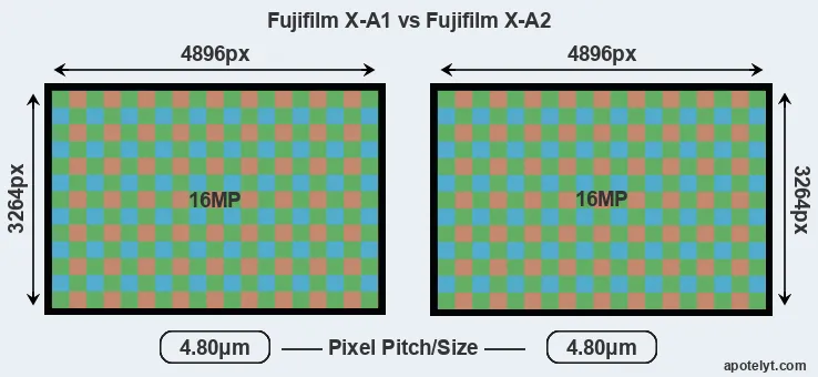 | Sensor Specs | Fujifilm X-A1 | Fujifilm X-A2 |