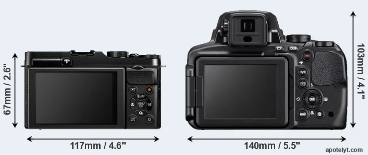 The above size and weight comparisons are to some extent incomplete and possibly misleading, as the P900 has a lens built in, whereas the X-A1 is an interchangeable lens camera that requires a separate lens. Attaching the latter will add extra weight and bulk to the setup. You can compare the optics available for the X-A1 and their specifications in the Fujinon X Lens Catalog.
