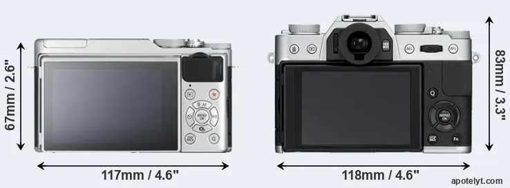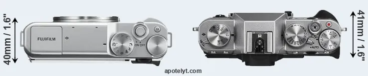 The above size and weight comparisons are to some extent incomplete since they do not consider the interchangeable lenses that both of these cameras require. In this particular case, both cameras feature the same lens mount, so that they can use the same lenses. You can compare the optics available in the Fujinon X Lens Catalog. Mirrorless cameras, such as the two under consideration, have the additional advantage of having a short flange to focal plane distance, which makes it possible to mount many lenses from other systems onto the camera via adapters.