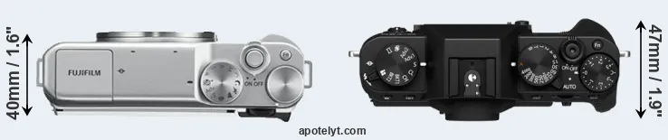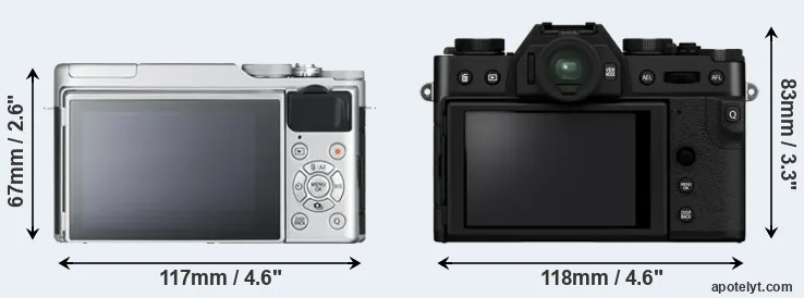 The above size and weight comparisons are to some extent incomplete since they do not consider the interchangeable lenses that both of these cameras require. In this particular case, both cameras feature the same lens mount, so that they can use the same lenses. You can compare the optics available in the Fujinon X Lens Catalog. Mirrorless cameras, such as the two under consideration, have the additional advantage of having a short flange to focal plane distance, which makes it possible to mount many lenses from other systems onto the camera via adapters.