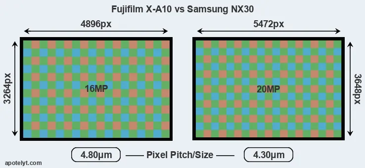 | Sensor Specs | Fujifilm X-A10 | Samsung NX30 |