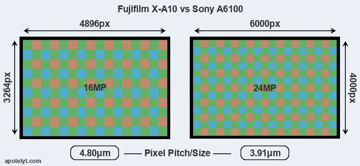 | Sensor Specs | Fujifilm X-A10 | Sony A6100 |
