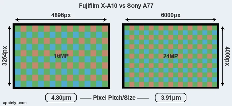 | Sensor Specs | Fujifilm X-A10 | Sony A77 |