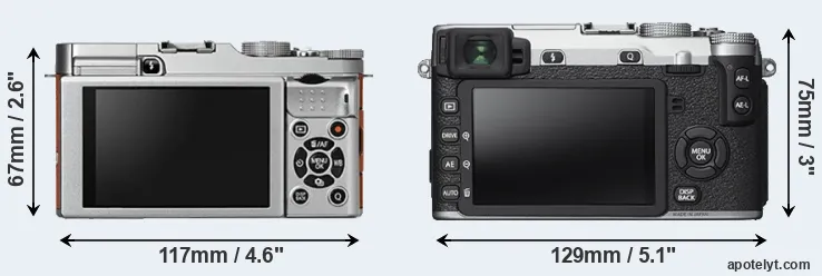 The above size and weight comparisons are to some extent incomplete since they do not consider the interchangeable lenses that both of these cameras require. In this particular case, both cameras feature the same lens mount, so that they can use the same lenses. You can compare the optics available in the Fujinon X Lens Catalog. Mirrorless cameras, such as the two under consideration, have the additional advantage of having a short flange to focal plane distance, which makes it possible to mount many lenses from other systems onto the camera via adapters.