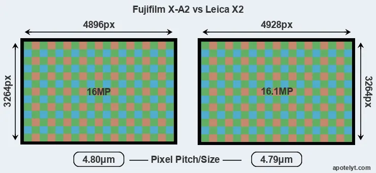 | Sensor Specs | Fujifilm X-A2 | Leica X2 |
