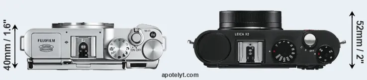 If the front view area (width x height) of the cameras is taken as an aggregate measure of their size, the Leica X2 is notably larger (9 percent) than the Fujifilm X-A2. In this context, it is worth noting that neither the X-A2 nor the X2 are weather-sealed.