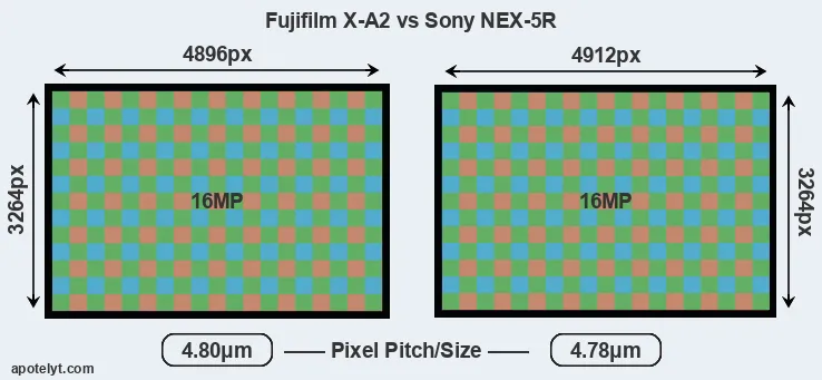 | Sensor Specs | Fujifilm X-A2 | Sony NEX-5R |